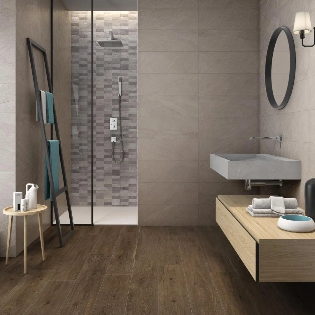 The Ark collection brings natural elegance and personality to modern interiors, offering stone-inspired ceramic tiles that combine bold visual texture with the practicality of red body ceramics. Each 25×75 cm tile features a refined matt finish that enhances its organic character, creating surfaces rich in depth and natural sophistication.