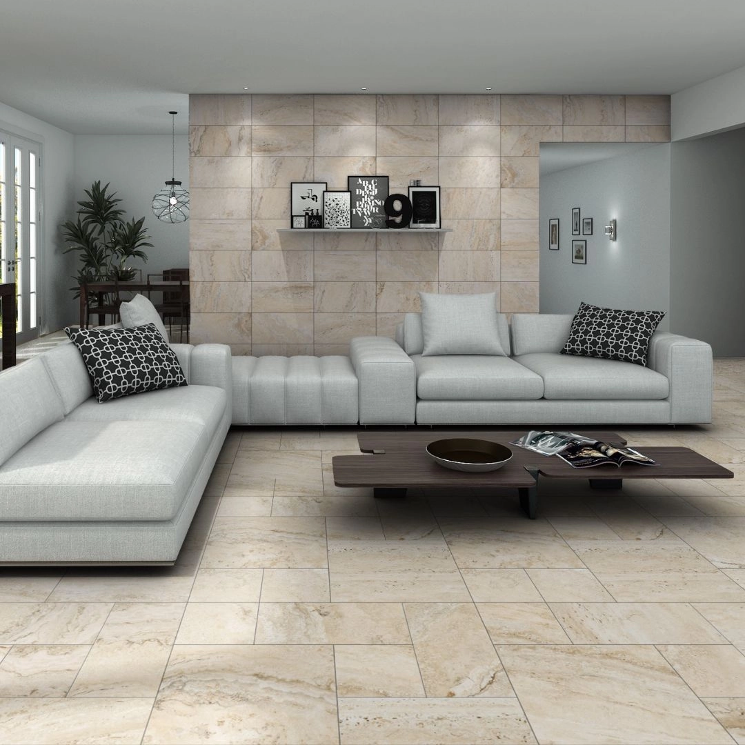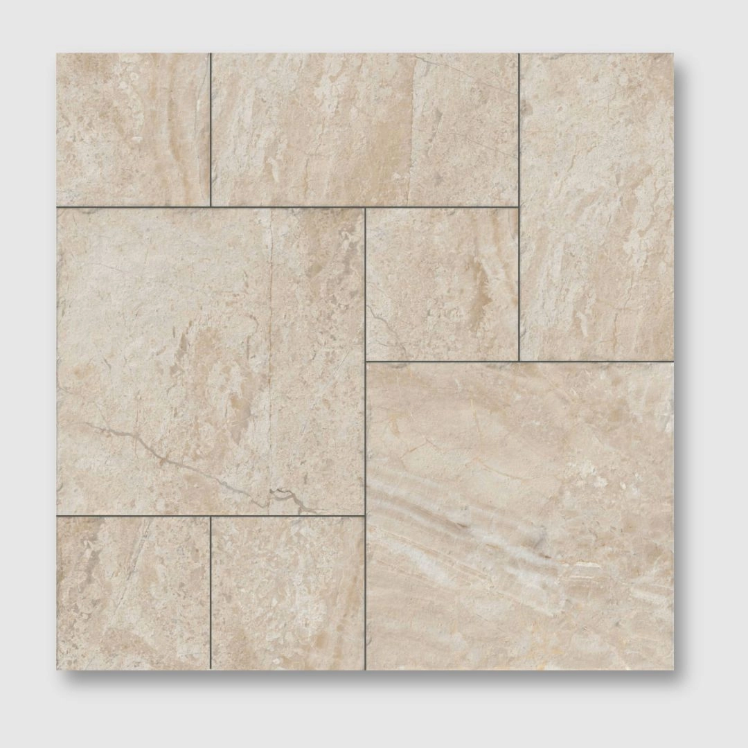The modular set includes 2 tiles of 50×50 cm, 2 tiles of 25×50 cm, and 4 tiles of 25×25 cm, providing endless possibilities for creative layouts. Available in three distinctive colours, this collection offers a refined yet natural aesthetic, perfect for achieving cohesive, character-rich designs.