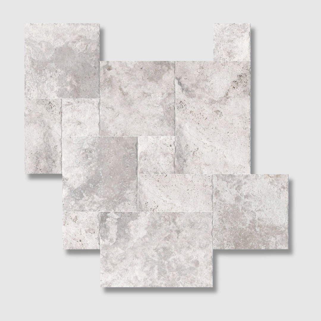 Available in elegant tones — Beige, Cream, and SilverCross Cut offers versatile design options with 44×66 cm tiles and a modular mix of four formats, allowing for creative and dynamic layouts.