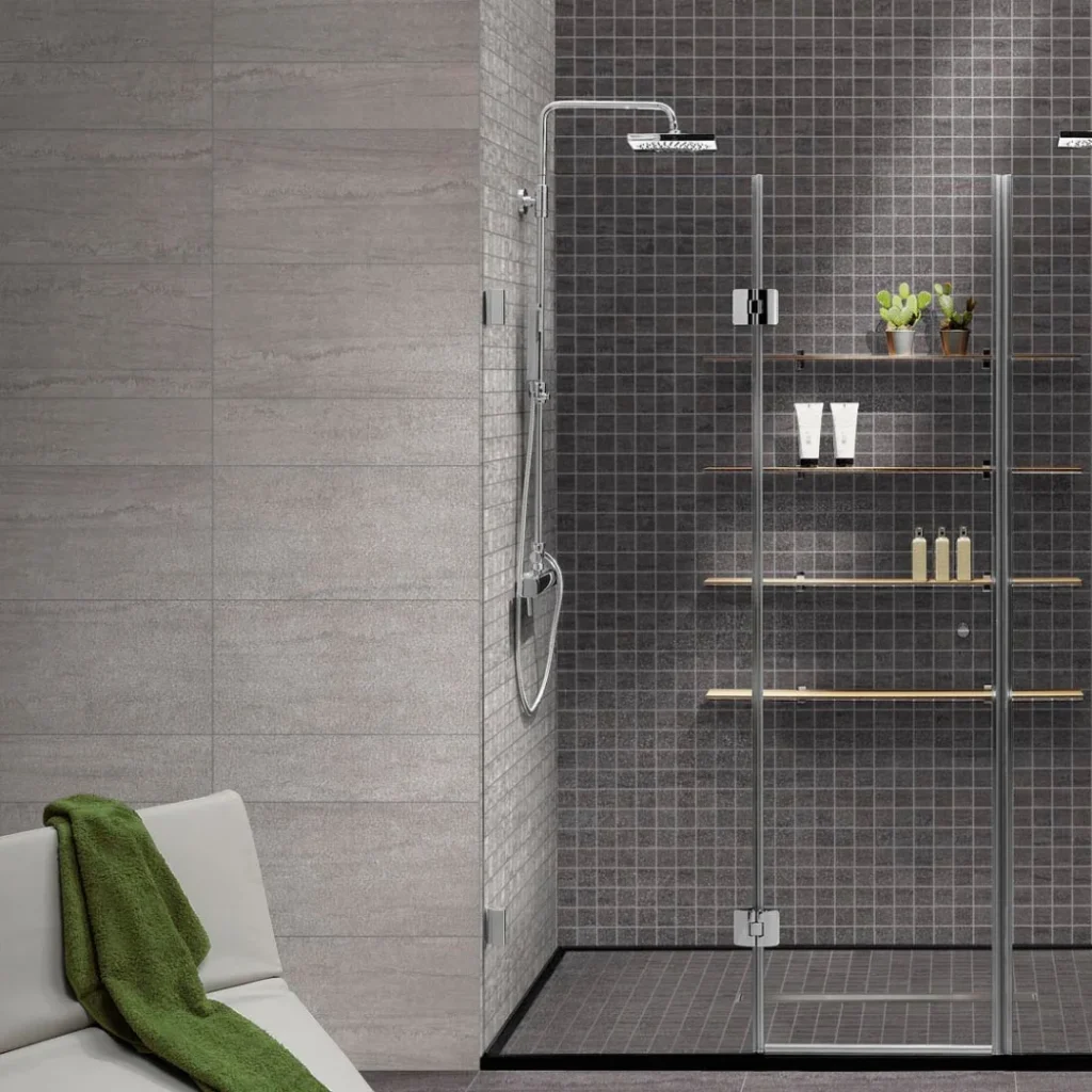 Available in 30×60 cm, the series comes in a wide range of elegant shades — Bianco, Avorio, Beige, Mandorla, Cappuccino, Cenere, Grigio, Marrone, and Nero — ideal for creating tone-on-tone or contrasting combinations. Each colour also includes a square mosaic 30×30 cm, perfect for decorative walls, shower areas, or coordinated details.