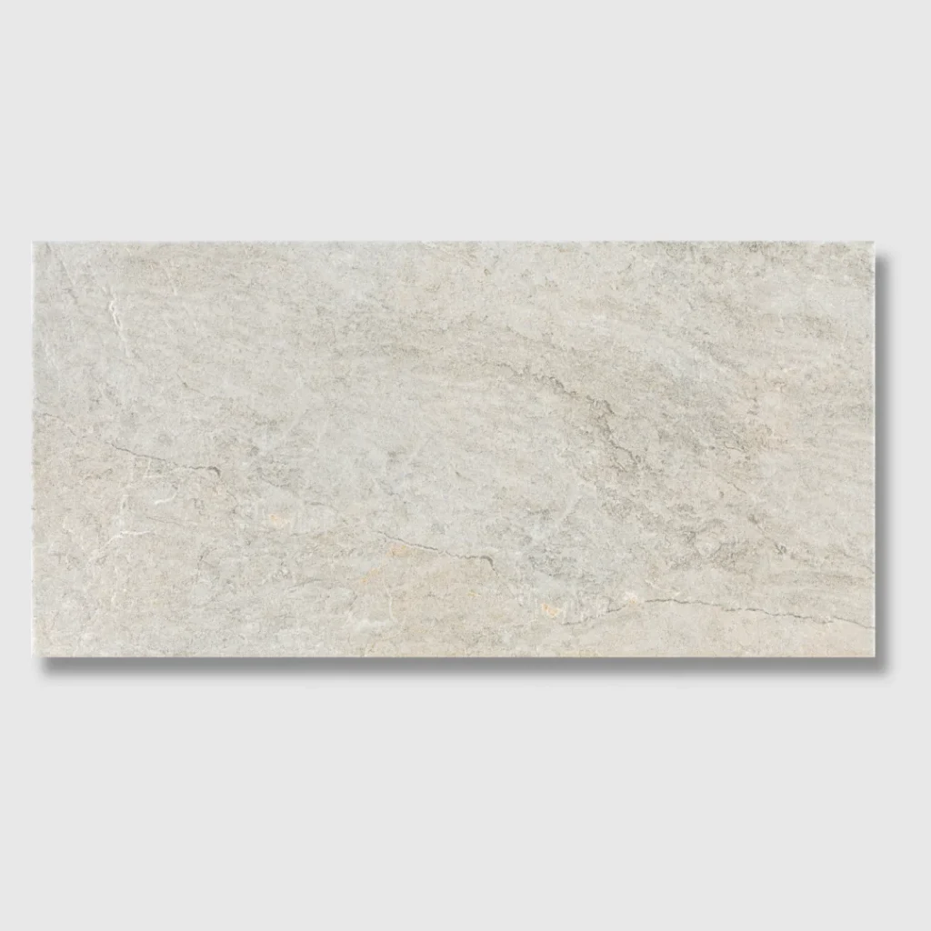 Available in three shades — Argent, Crema, Perla — each colour creates a different atmosphere: from the cool depth of grey to the brightness of off-white and the natural warmth of beige. The 31×63 cm format gives balance and versatility, ideal for bathrooms, kitchens, and living areas.