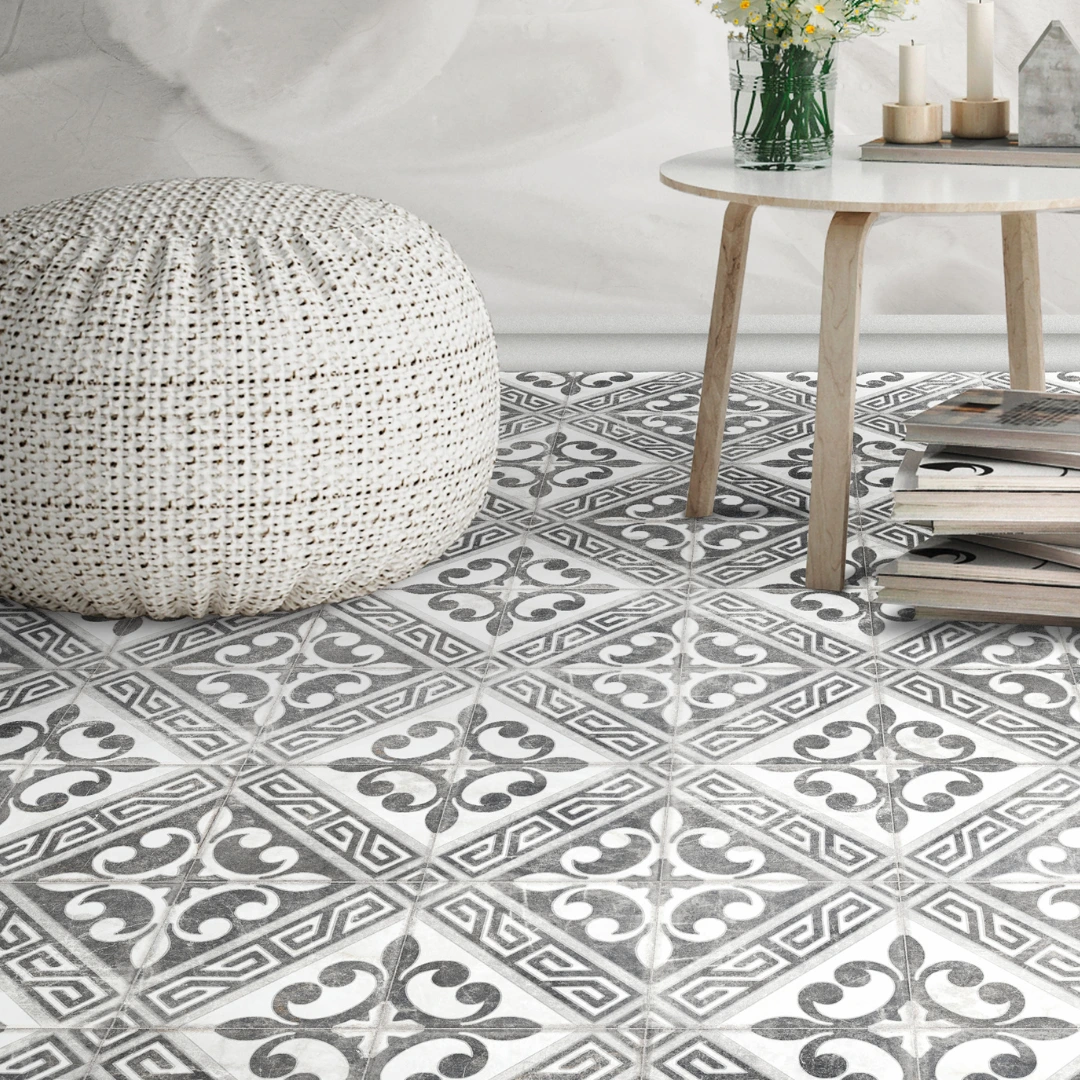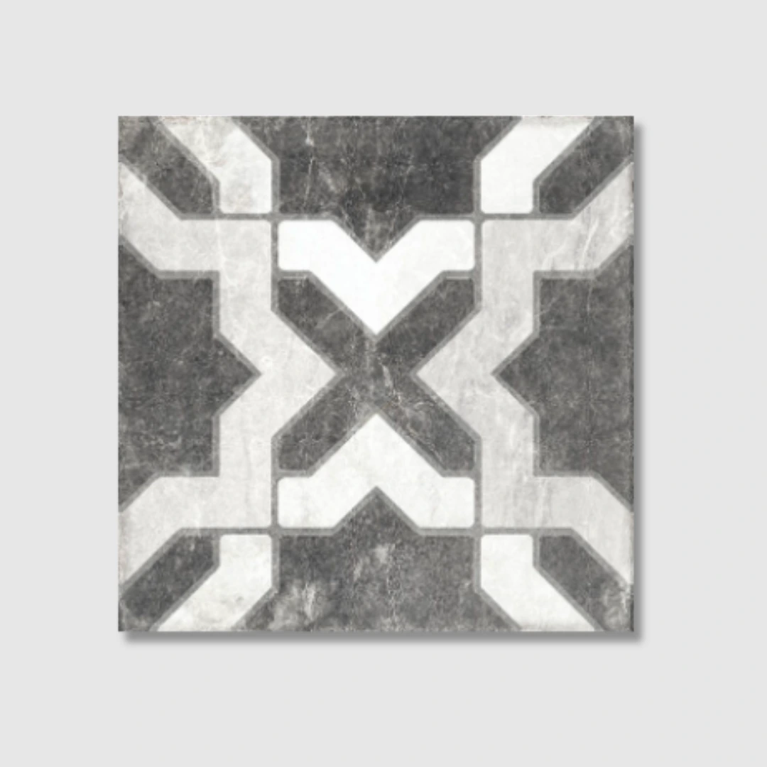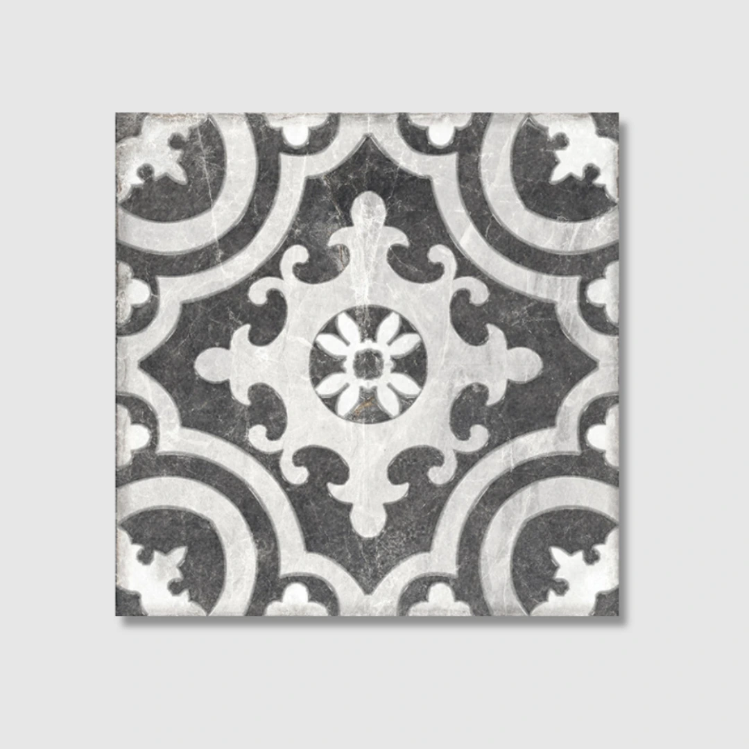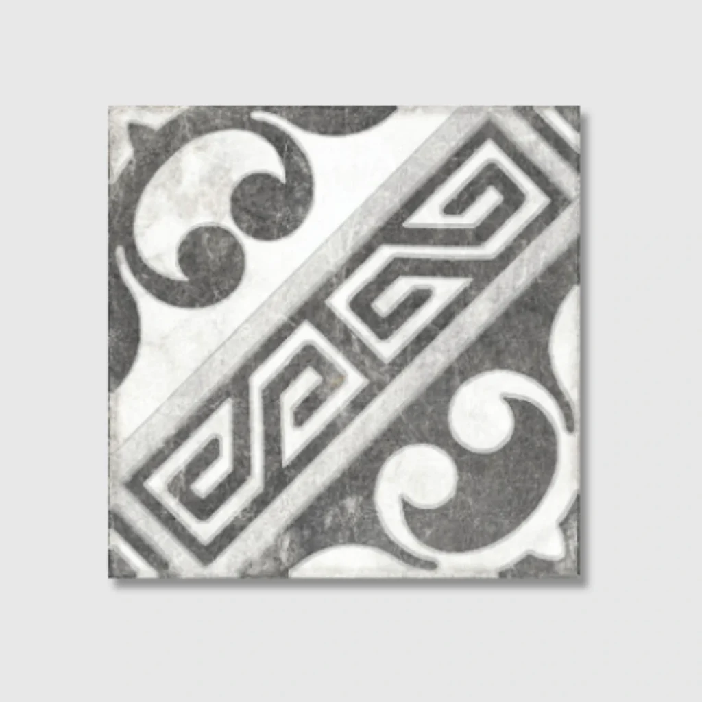 The Time collection is a Victorian porcelain tile collection that blends marble beauty with timeless style. It includes plain tiles in White and Black, available in 20×20 cm format, and three decorative designs: Pisa, Venice, and Rome. Each tile features a matt surface that enhances the marble effect and adds elegance to both floors and walls.