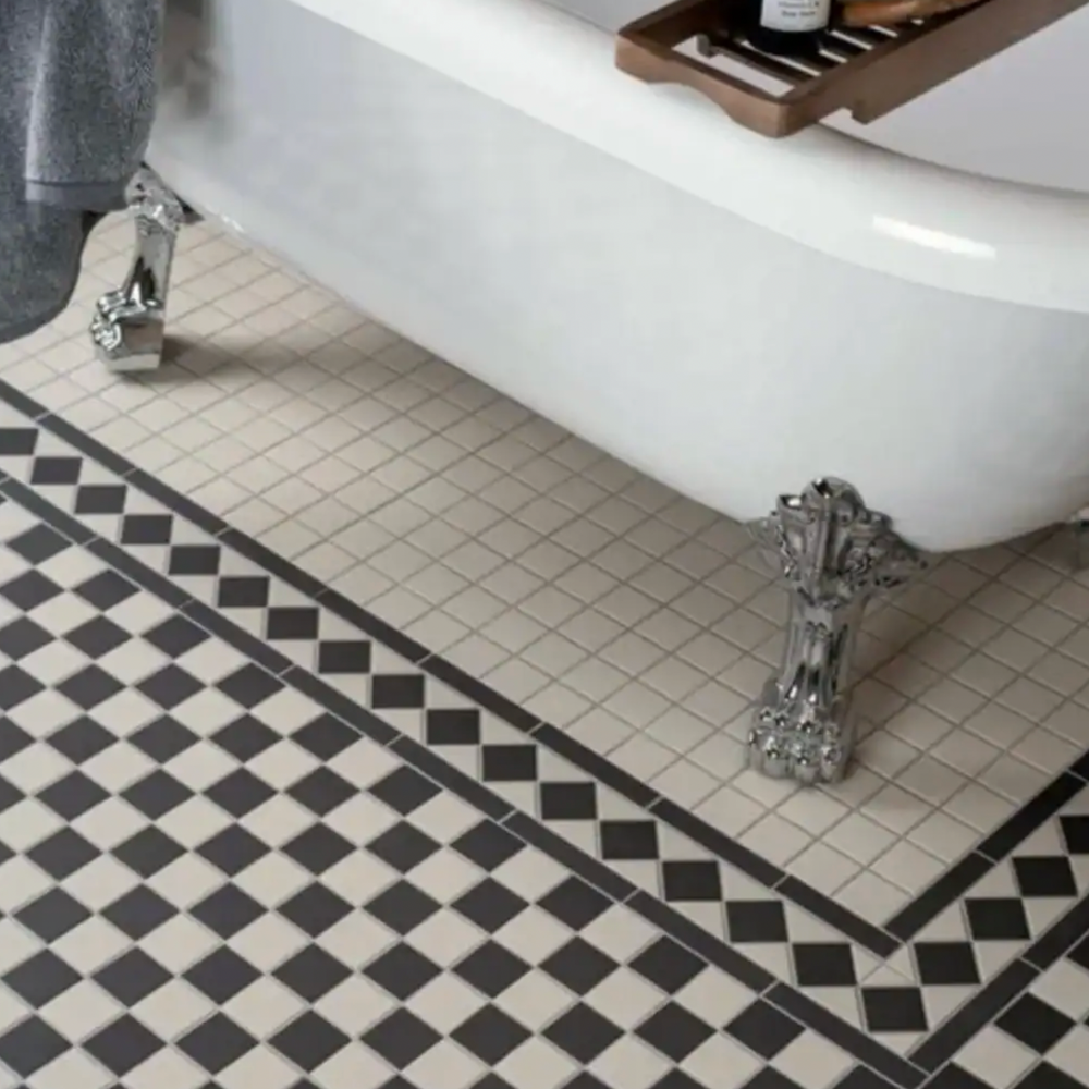 Each tile features a matte finish and a durable porcelain body, making the range ideal for high-traffic spaces like hallways, kitchens, bathrooms, and entrances. You can mix Victorian Black and Victorian White with the coordinating Victorian Corner and Border tiles to complete a cohesive design.