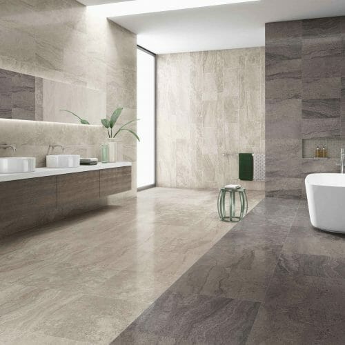 We have a fantastic range of large format tiles available. On this website we have shown you just a few examples; just enough to give you some ideas. In our Coventry showroom we have loads of options for you to explore – it’s a huge showroom with hundreds of large floor tiles and wall tiles on display as well as bathroom suites, bathroom furniture, taps, showers, towel rails and more. It really is well worth a visit. While you are there, our highly experienced team will be happy to answer your questions and help you find everything you need. What’s more, if we don’t have what you are looking for in store, we can almost certainly get it for you, as we have supply agreements with many of the best manufacturers of tiles and bathrooms in Europe.